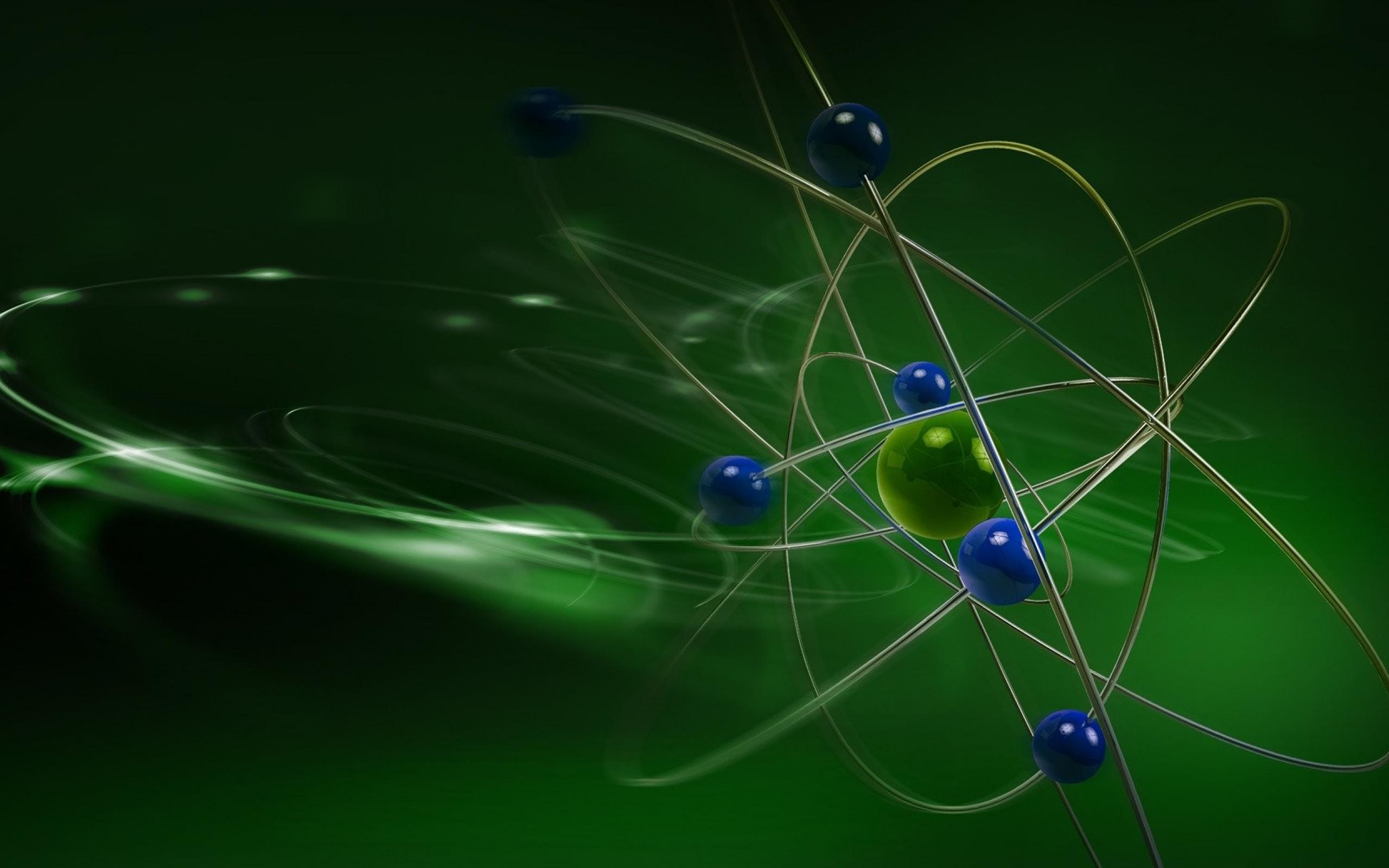 Wallpaper The model of an atom on a green background