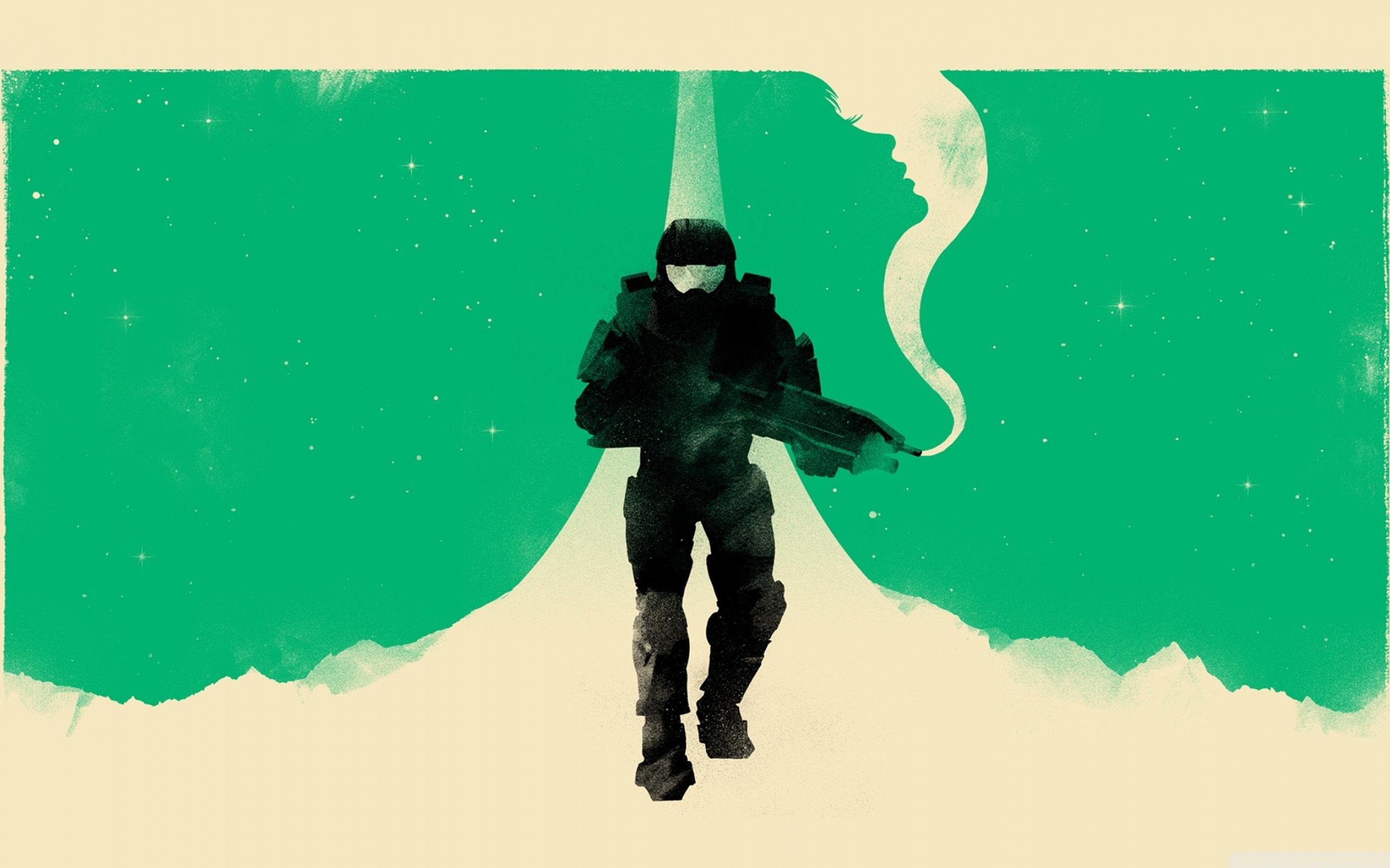 Wallpaper Green background Master Chief, Halo game