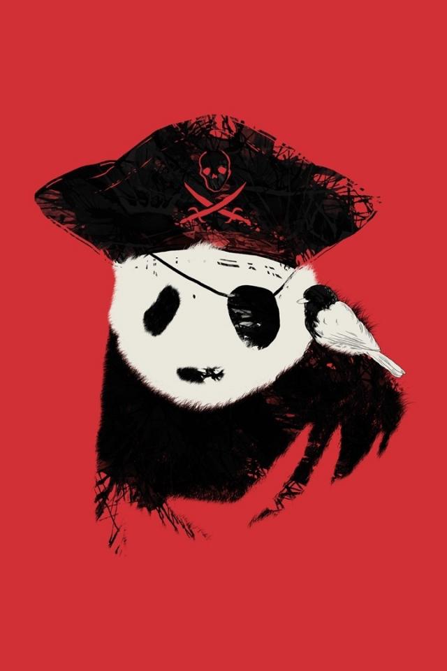 Wallpaper Panda pirate red background