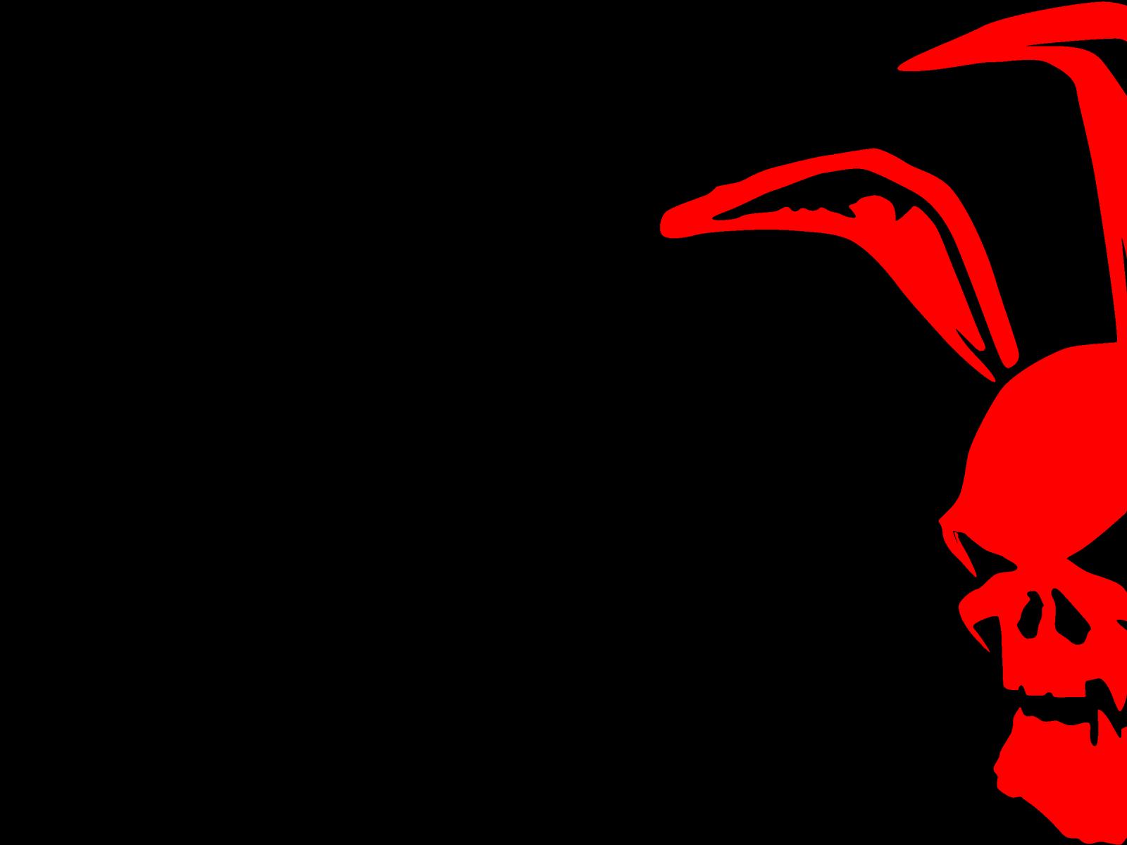 Wallpaper Red skull with hare ears on black background