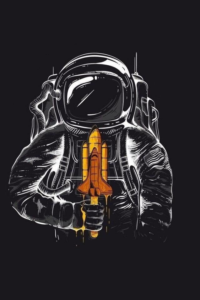 Wallpaper Astronaut with a lollipop in the shape of the Space Shuttle