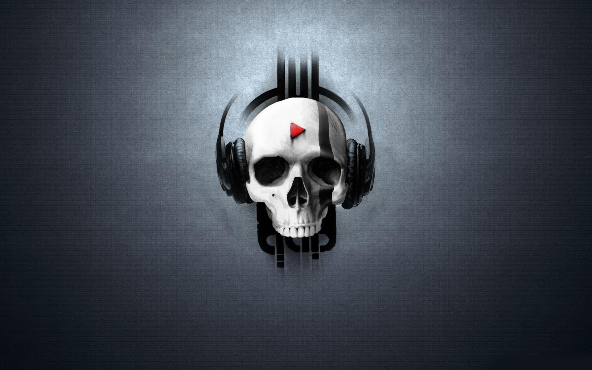 Wallpaper Skull with headphones, gray background