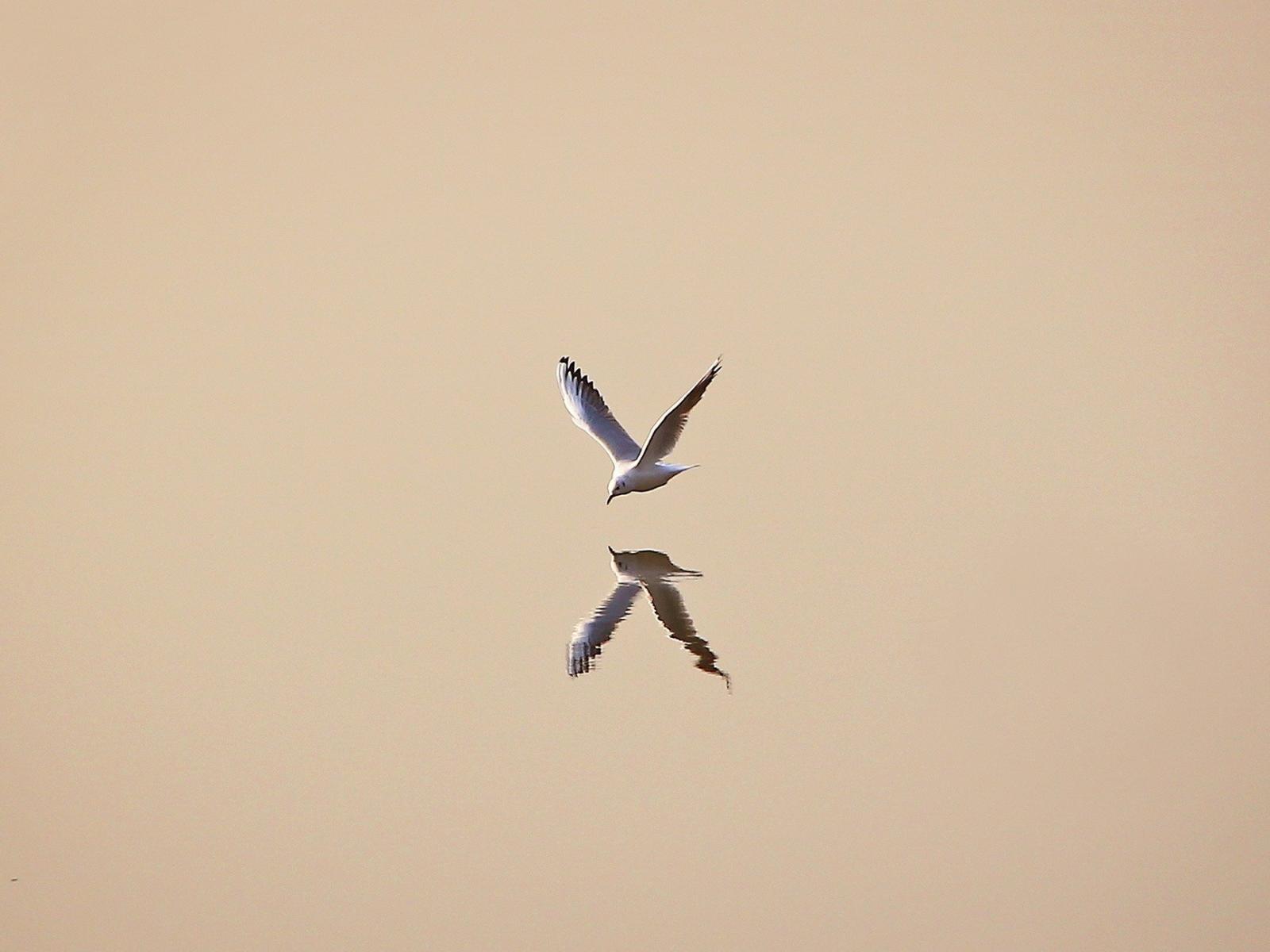 Wallpaper Seagull reflected in water, light background