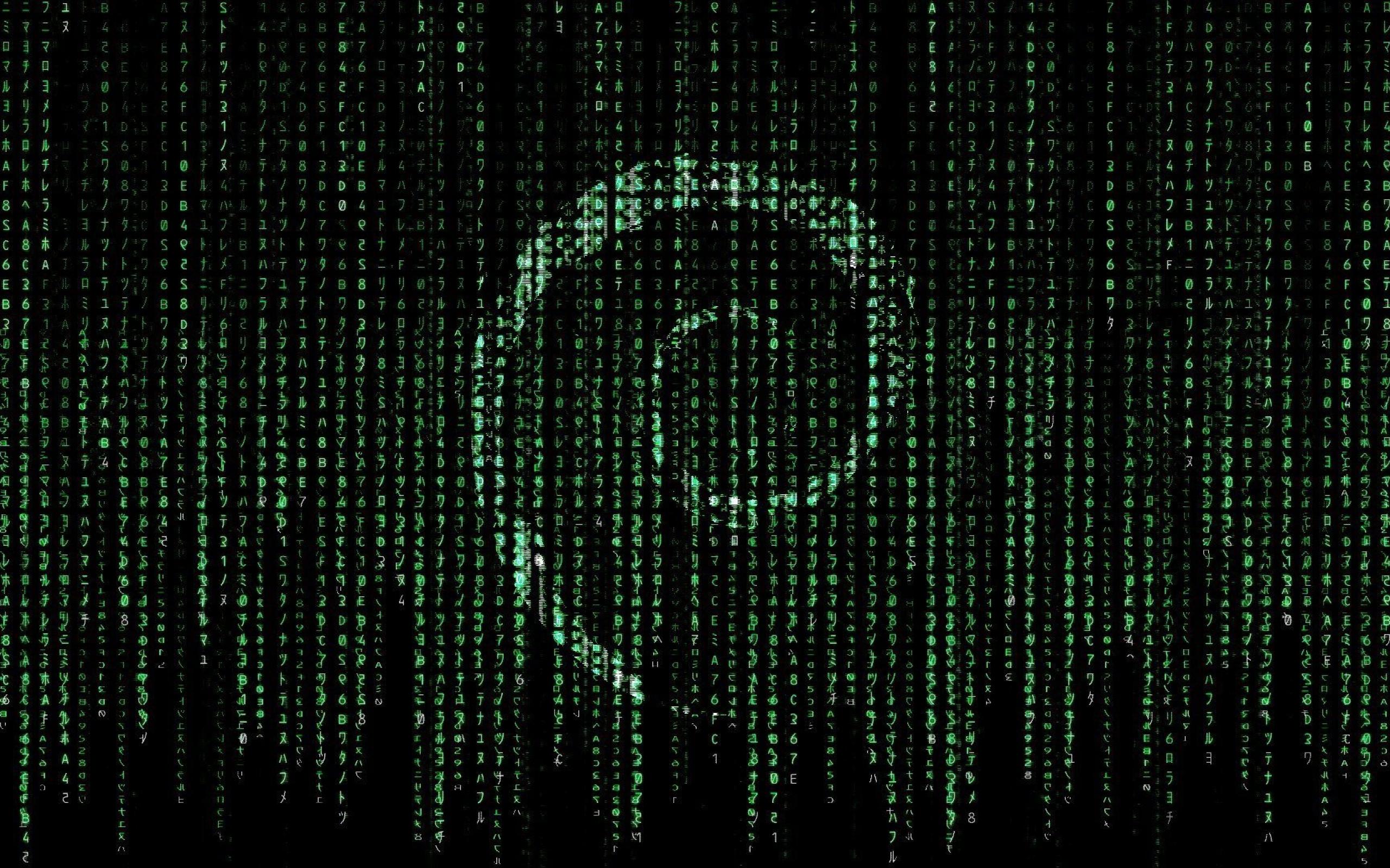 Wallpaper Debian symbol on the background matrix