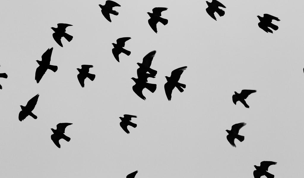Wallpaper Silhouettes of black birds, gray background