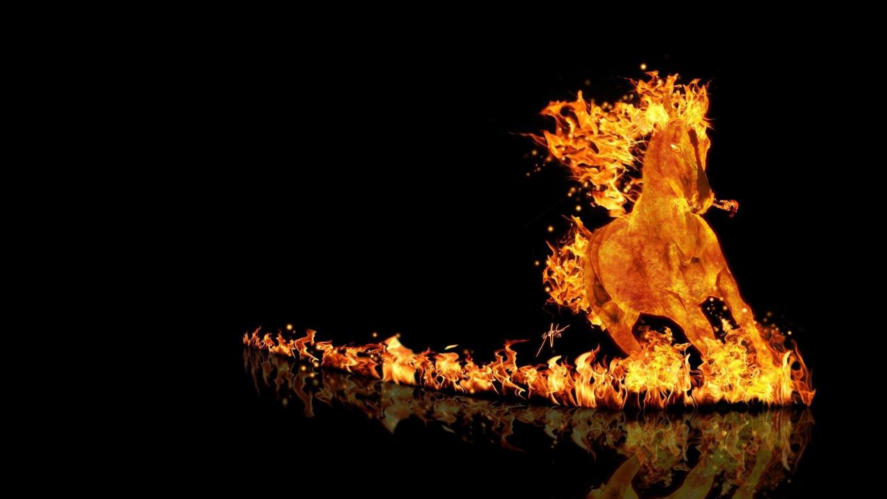 Wallpaper Horse of fire, black background