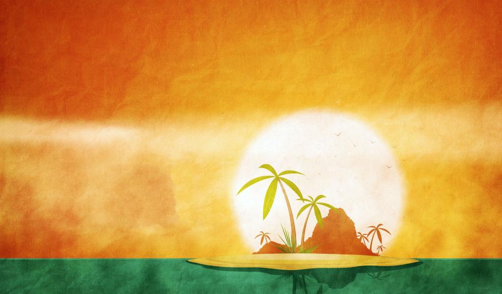 Wallpaper Tropical island, orange green background