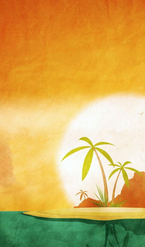 Wallpaper Tropical island, orange green background