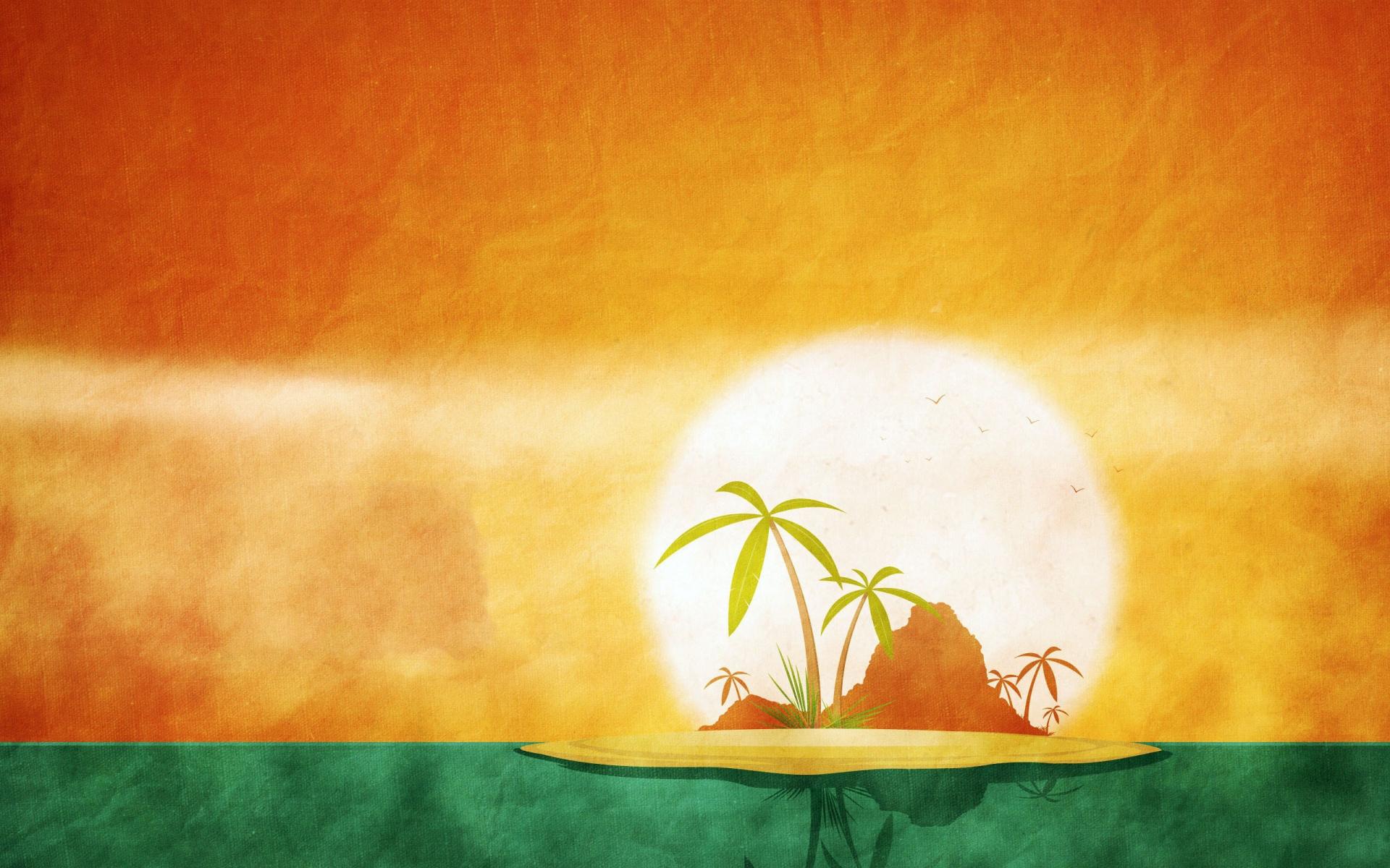 Wallpaper Tropical island, orange green background