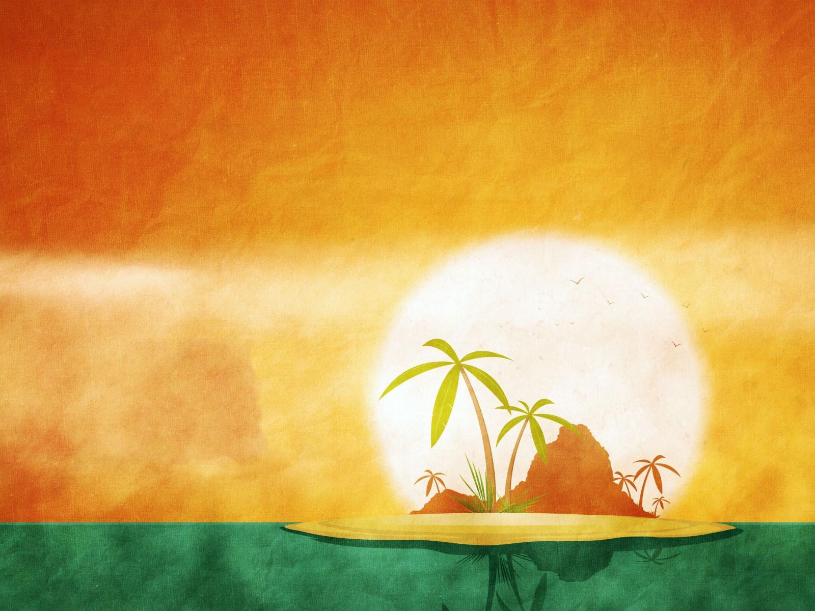 Wallpaper Tropical island, orange green background