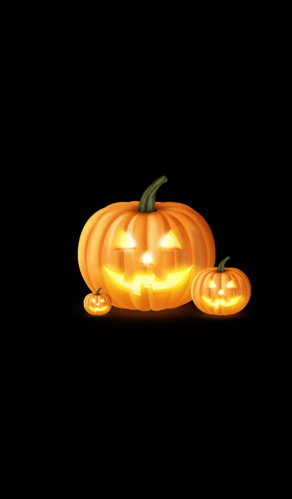 Wallpaper Three pumpkins on a black background
