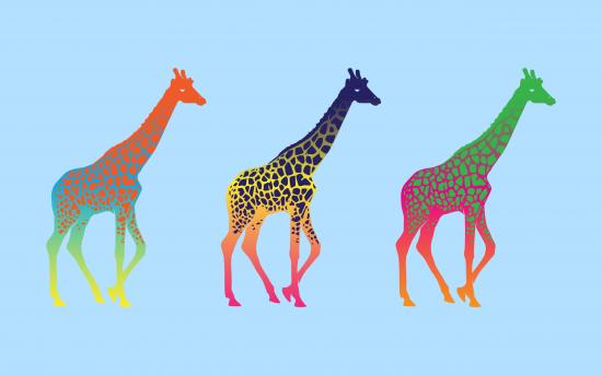 Wallpaper Colorful giraffes, blue background