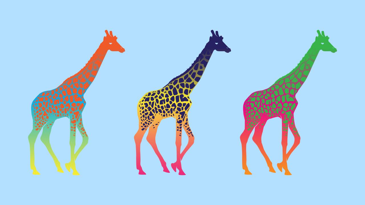 Wallpaper Colorful giraffes, blue background