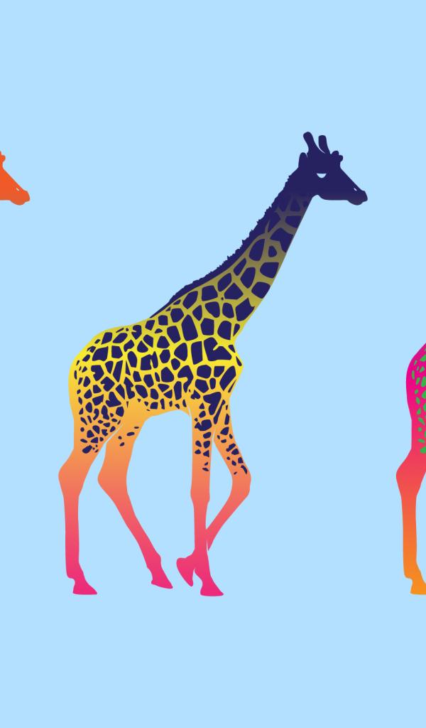 Wallpaper Colorful giraffes, blue background