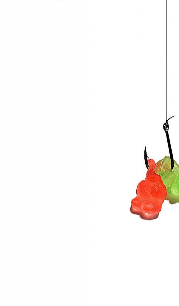 Wallpaper Jelly candies on a hook, white background