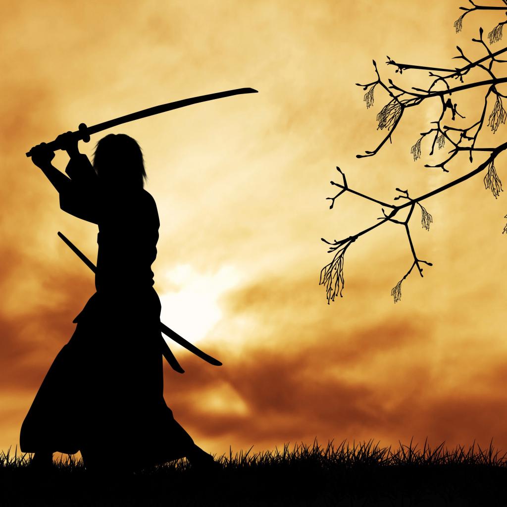 Wallpaper Silhouette of a samurai with katana