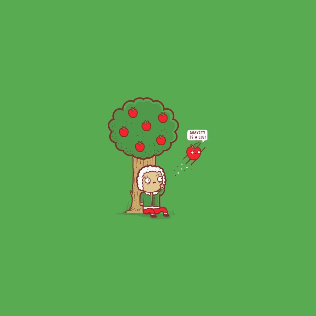Wallpaper Newton under an apple tree, green background