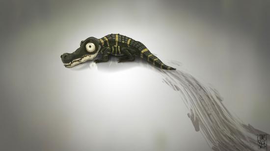 Wallpaper Crocodile left a mark on a gray background