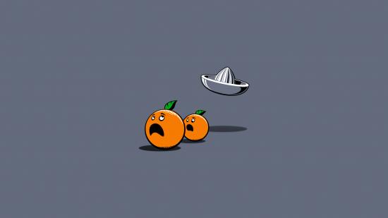 Wallpaper Oranges running away from the juicer