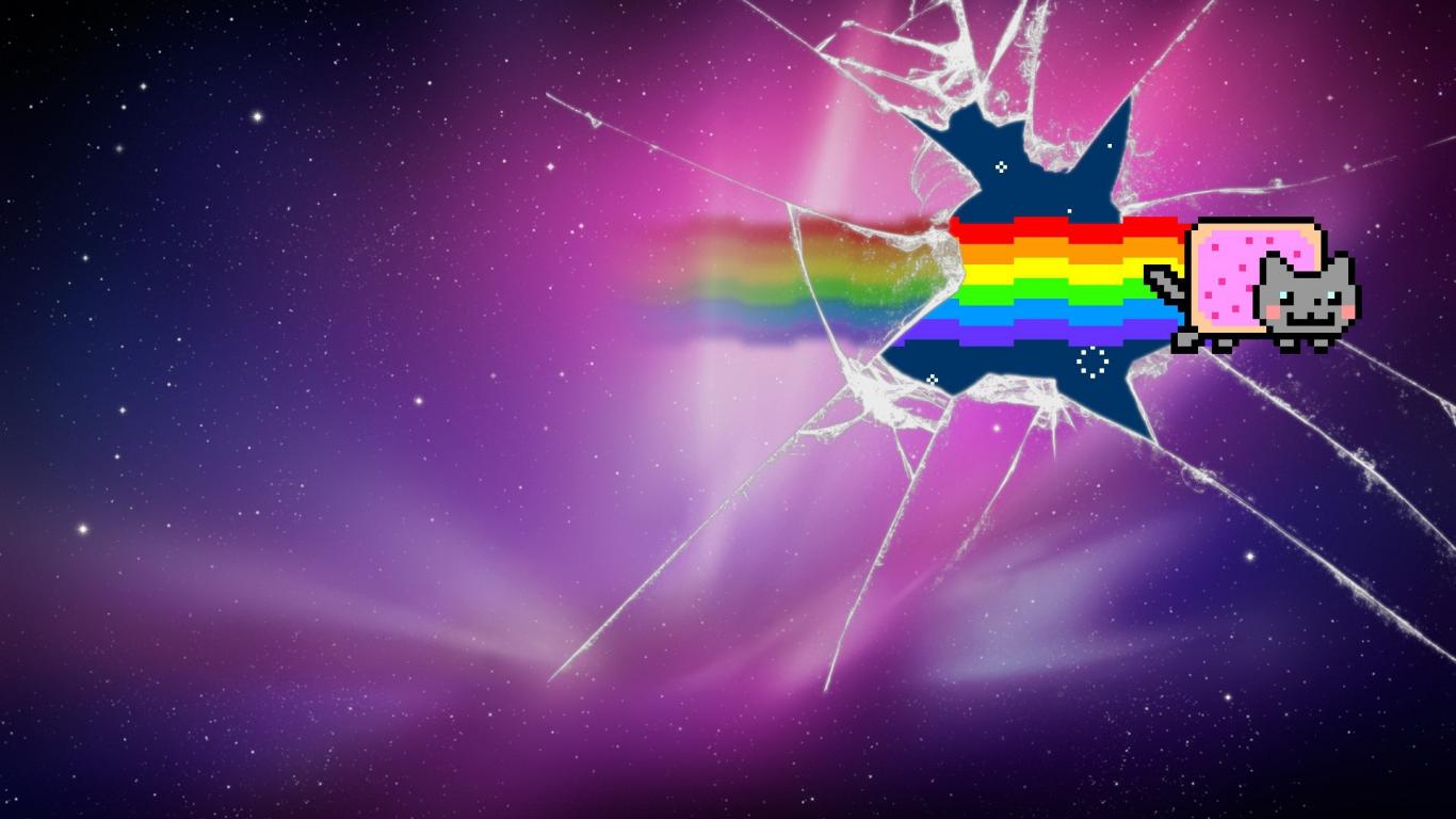 Wallpaper Nyan cat smashed the glass