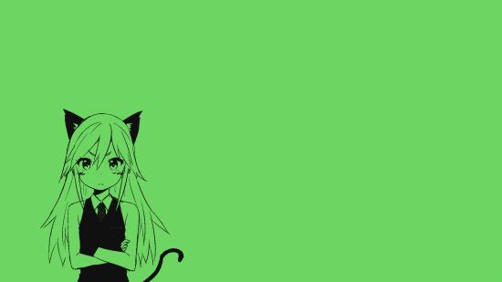 Wallpaper The girl cat, anime green background