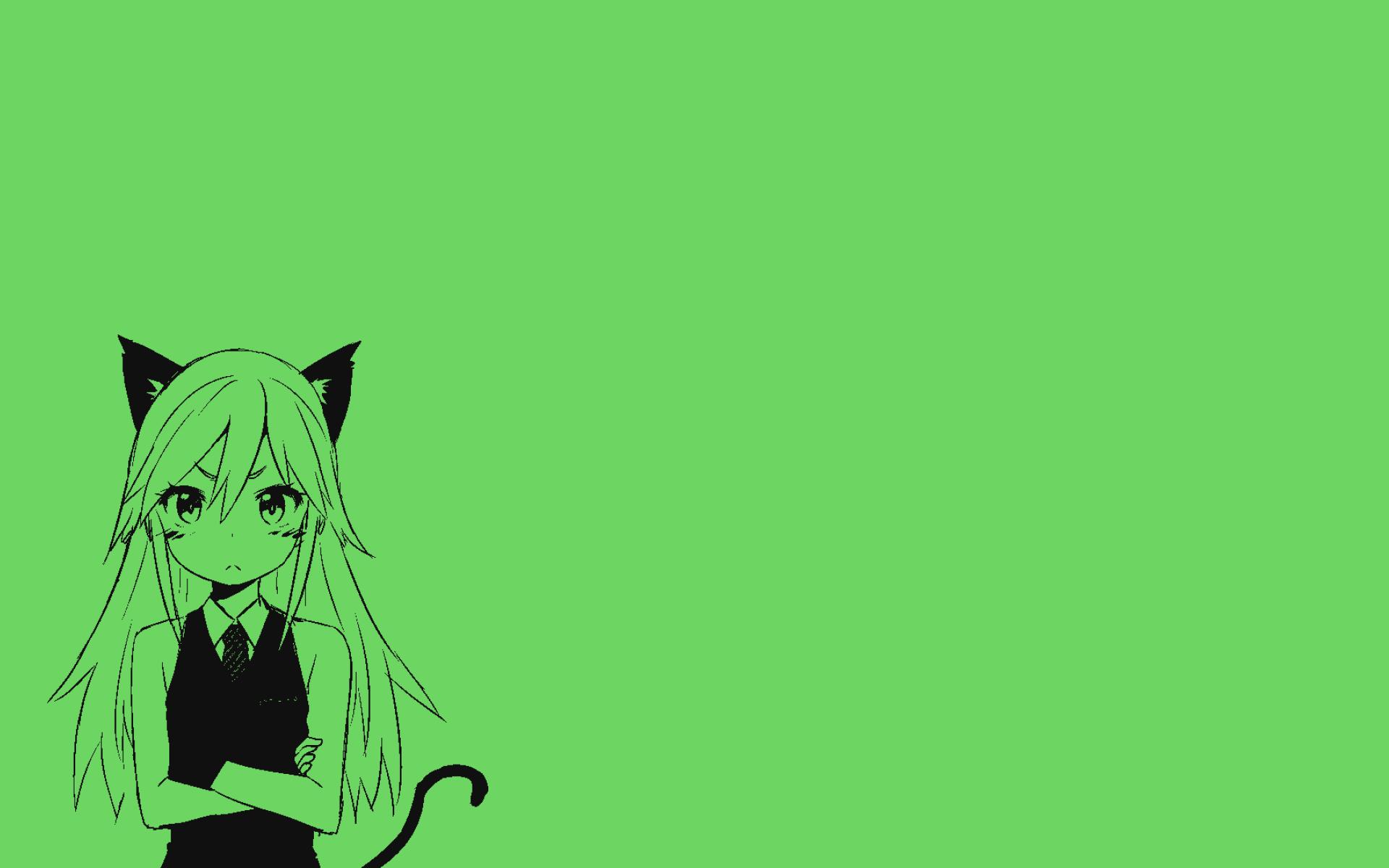 Wallpaper The girl cat, anime green background