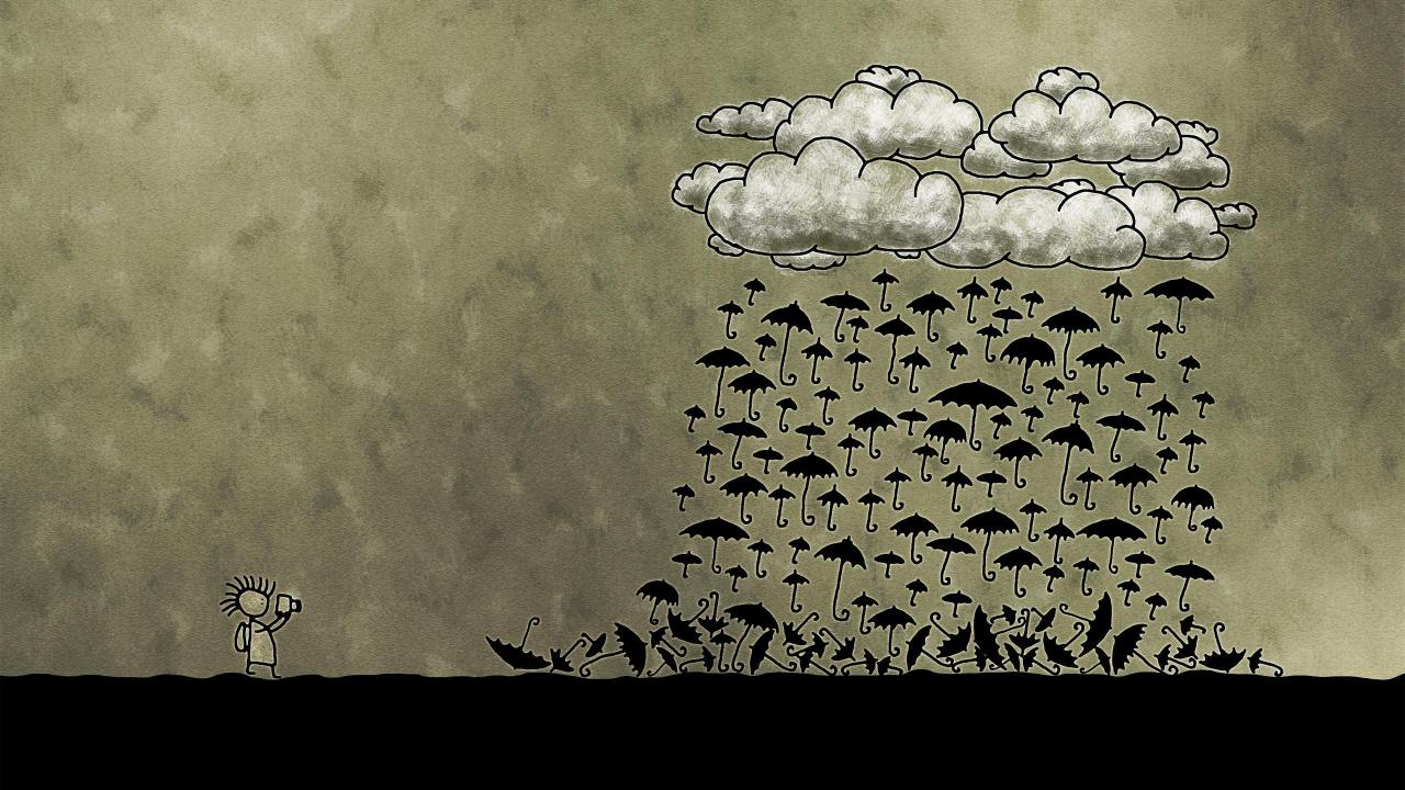 Wallpaper Rain of black umbrella