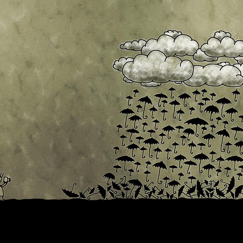 Wallpaper Rain of black umbrella