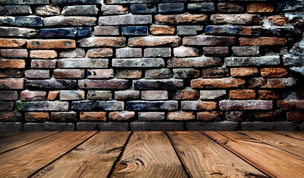 Wallpaper Wooden floors, brick wall