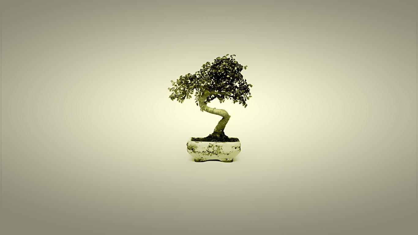 Wallpaper Bonsai in a pot, gray background