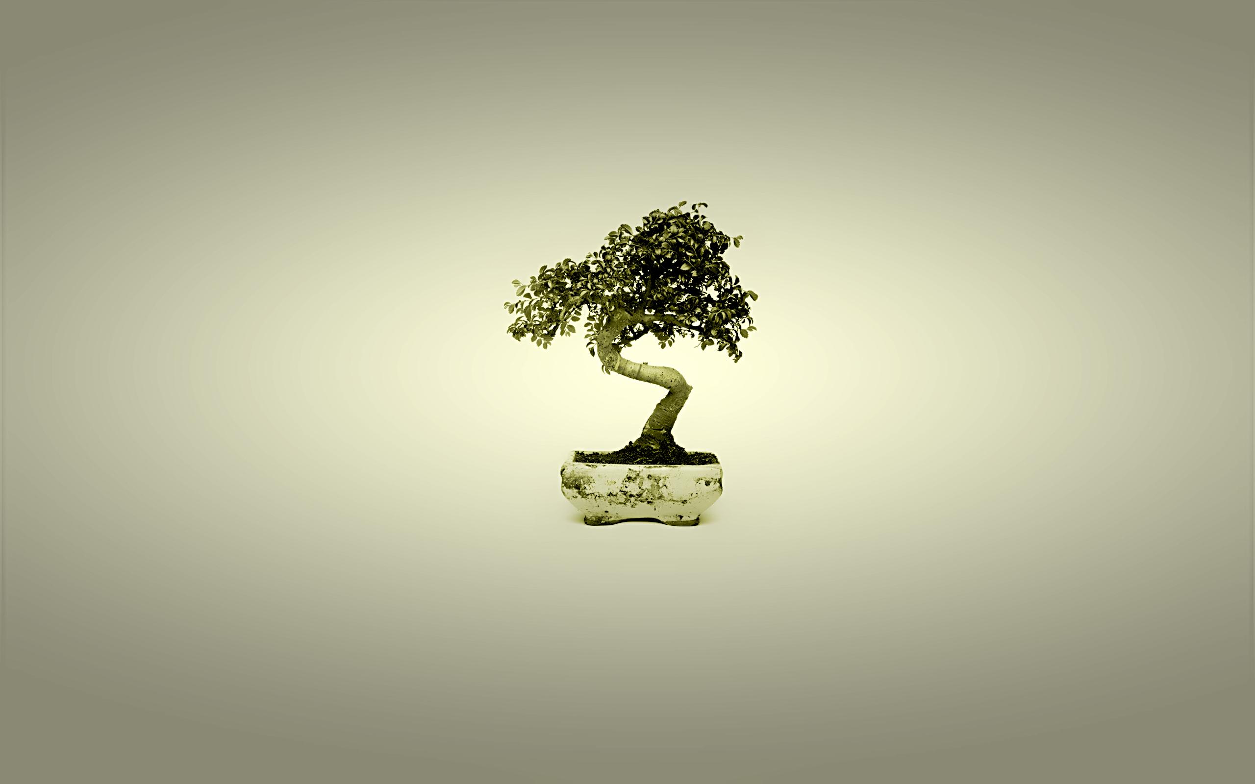 Wallpaper Bonsai in a pot, gray background