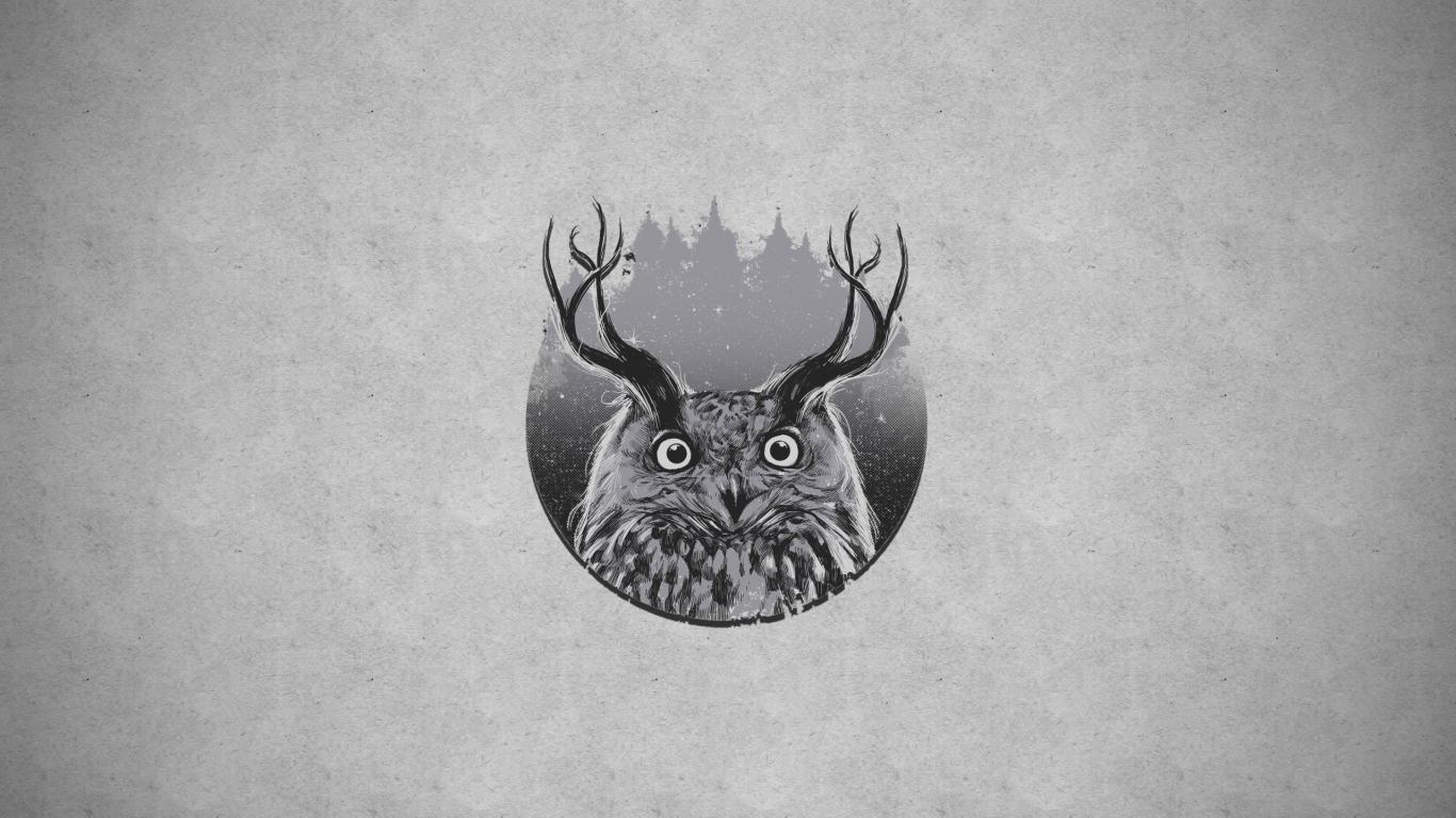 Wallpaper Owl with horns, gray background