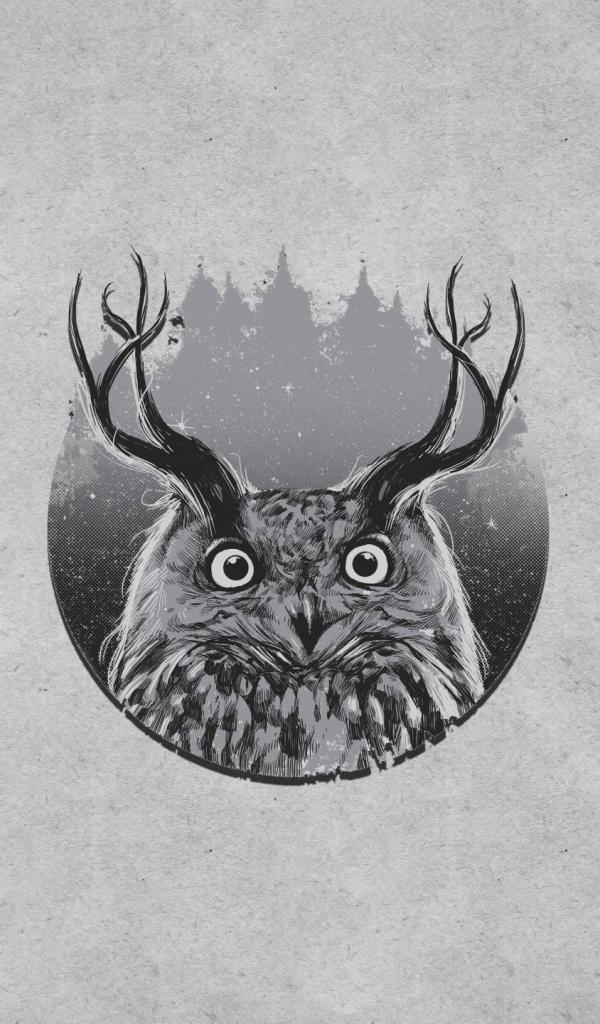 Wallpaper Owl with horns, gray background