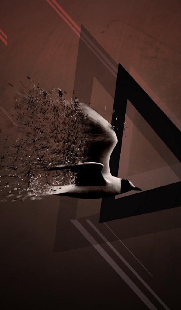Wallpaper Bird and triangle brown background