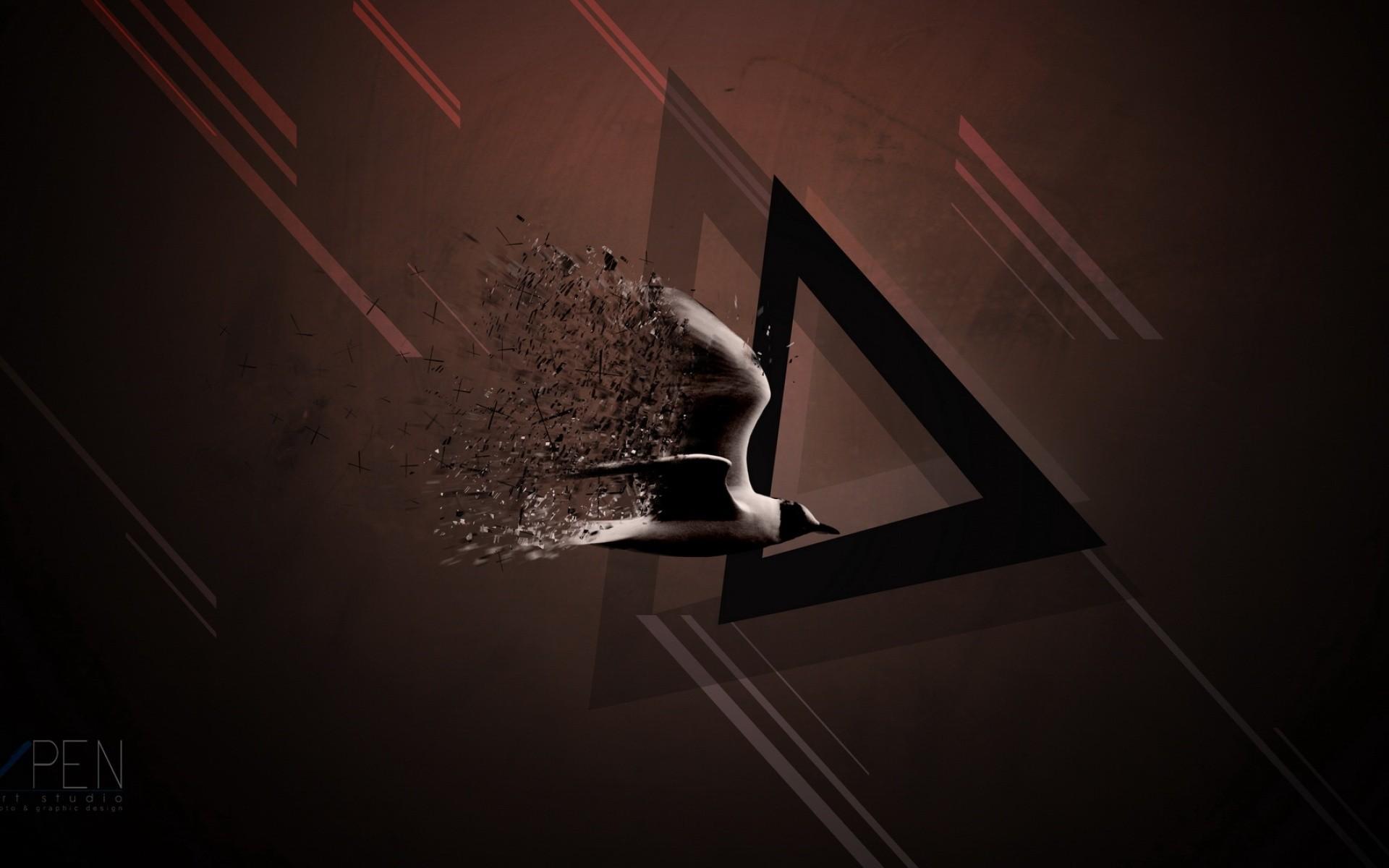 Wallpaper Bird and triangle brown background
