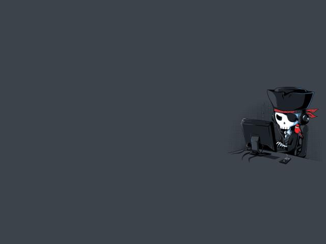Wallpaper Pirate at the computer, gray background