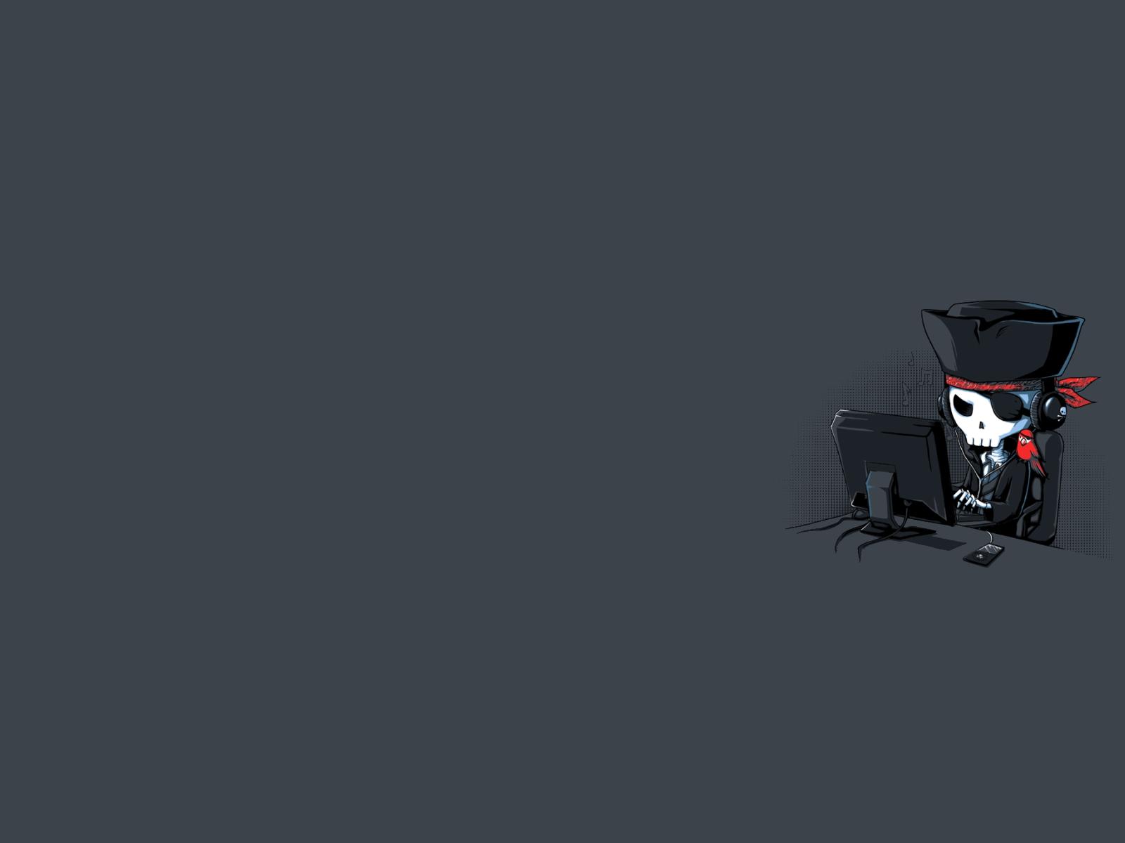 Wallpaper Pirate at the computer, gray background