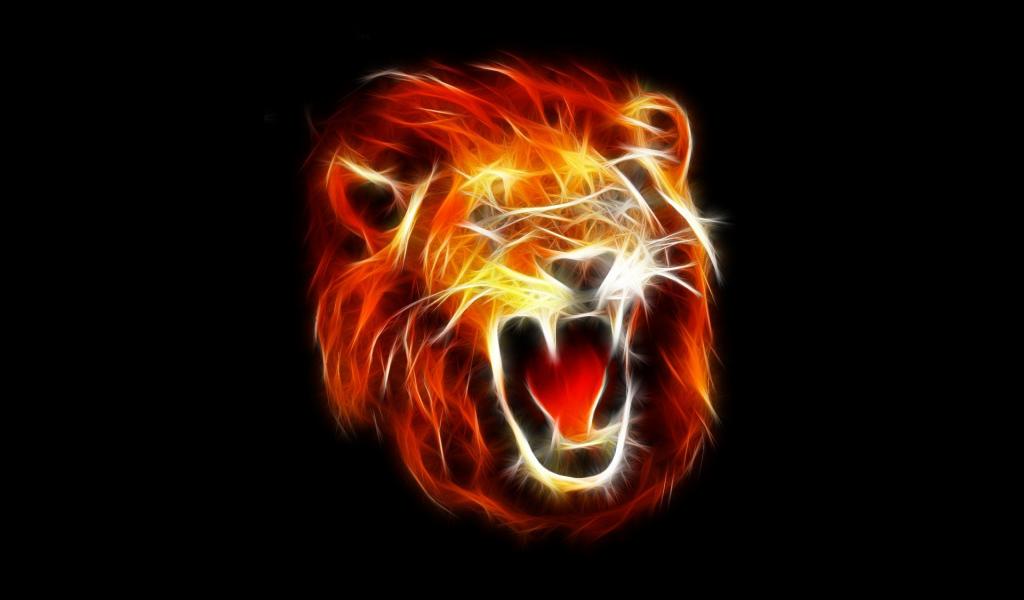 Wallpaper Fire face of a lion, black background