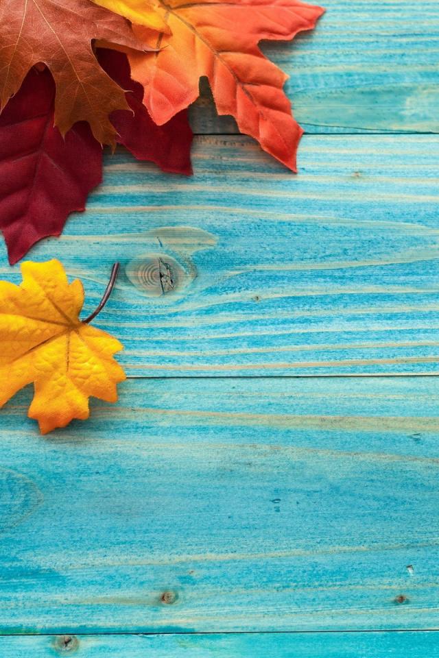 Wallpaper Autumn leaves on blue boards