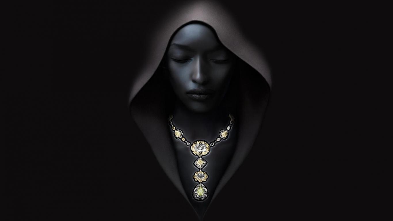 Wallpaper A girl in a hood on a black background