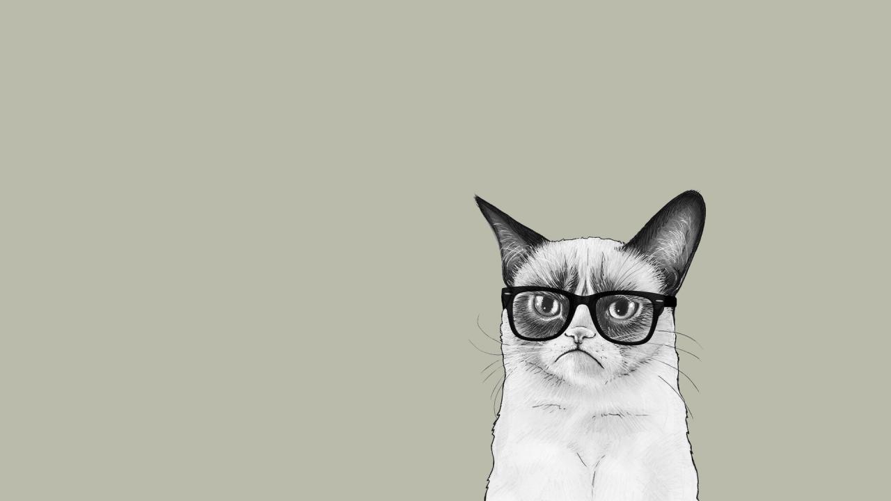 Wallpaper The Cat in the glasses, gray background
