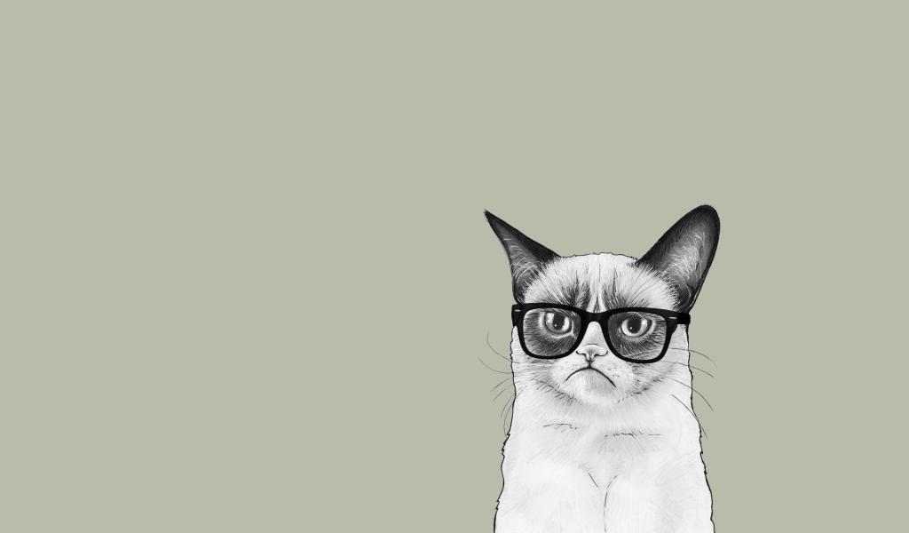 Wallpaper The Cat in the glasses, gray background