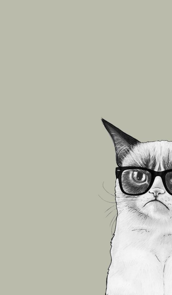 Wallpaper The Cat in the glasses, gray background