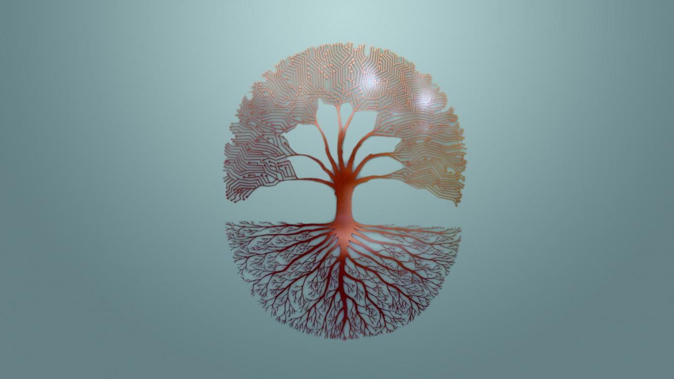Wallpaper Branches and roots of a tree, gray background
