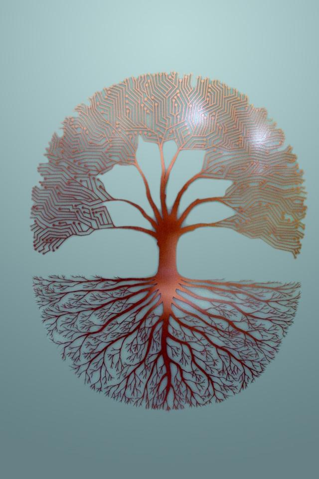 Wallpaper Branches and roots of a tree, gray background
