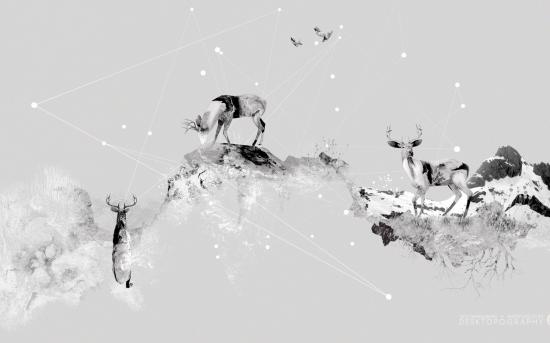 Wallpaper Deer in the mountains, gray background