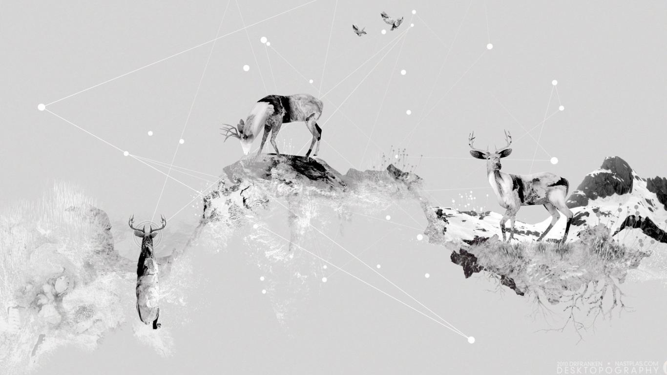 Wallpaper Deer in the mountains, gray background