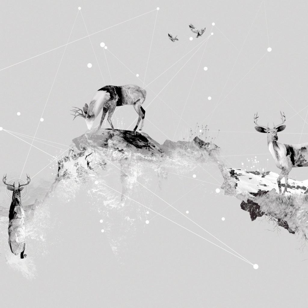 Wallpaper Deer in the mountains, gray background
