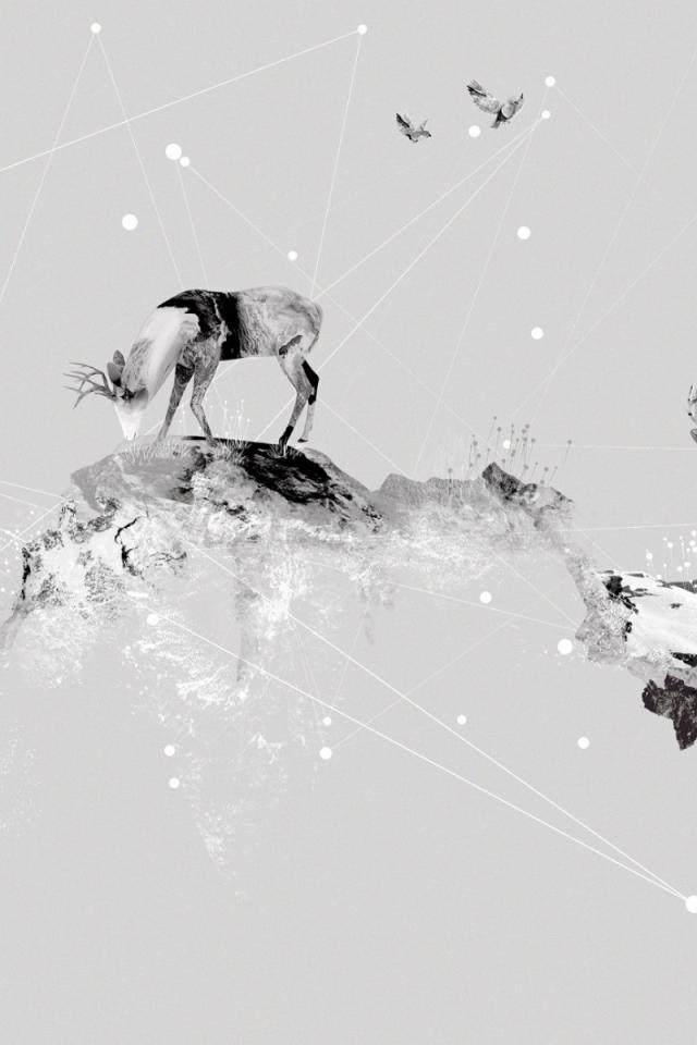 Wallpaper Deer in the mountains, gray background