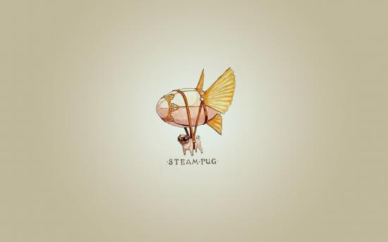 Wallpaper Pug on the airship, gray background